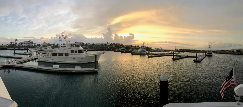 After the stick you leave the relatively shallow waters and are in depths of close to 3000 feet(!) at times before making your approach into Chub Cay. Fortunately the seas remained very calm and the remainder of our trip was uneventful. When we had called ahead to Chub Cay Marina they said no need for a reservation and to just hail as we got close (VHF 68). A very friendly gentleman with a Bahamian accent answered our hail and directed us to our slip, accommodating our preference for a bow-in, starboard tie. We’re good with whatever we’re assigned but always request this arrangement as we like to face the water rather than a dock from our slip.