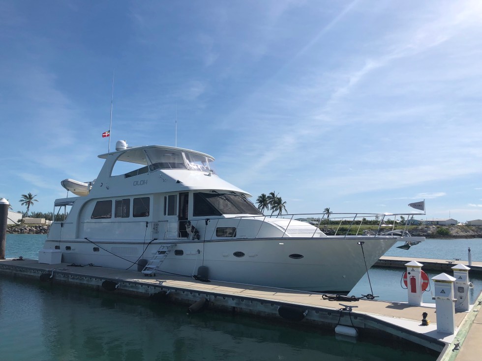 But despite all the fun it was time to go and we studied the weather several times each day looking for our window to move on. We originally thought we wouldn’t be able to leave any sooner than Monday, ten days after arriving, but when we awoke on Sunday we looked at our sources and decided that there was a window opening through which we should jump. So we went into departure mode with the idea of leaving just before midday to plan around the abating winds through the afternoon. We checked out, stopped at the fuel dock to top off the tanks and left Chub Cay after a grand stay, pointing OLOH’s bow towards Nassau with 15 mph winds and a three foot sea on our nose. So the ride was a bit wet but much easier to handle with stabilizers that we still couldn’t fully trust and overall completely manageable as we traversed the waters of the Atlantic known as the Tongue Of The Ocean. At times we were in depths of around 6,000 feet! While it wasn’t a big distance to travel, it is a body of water (like them all) which is to be respected.