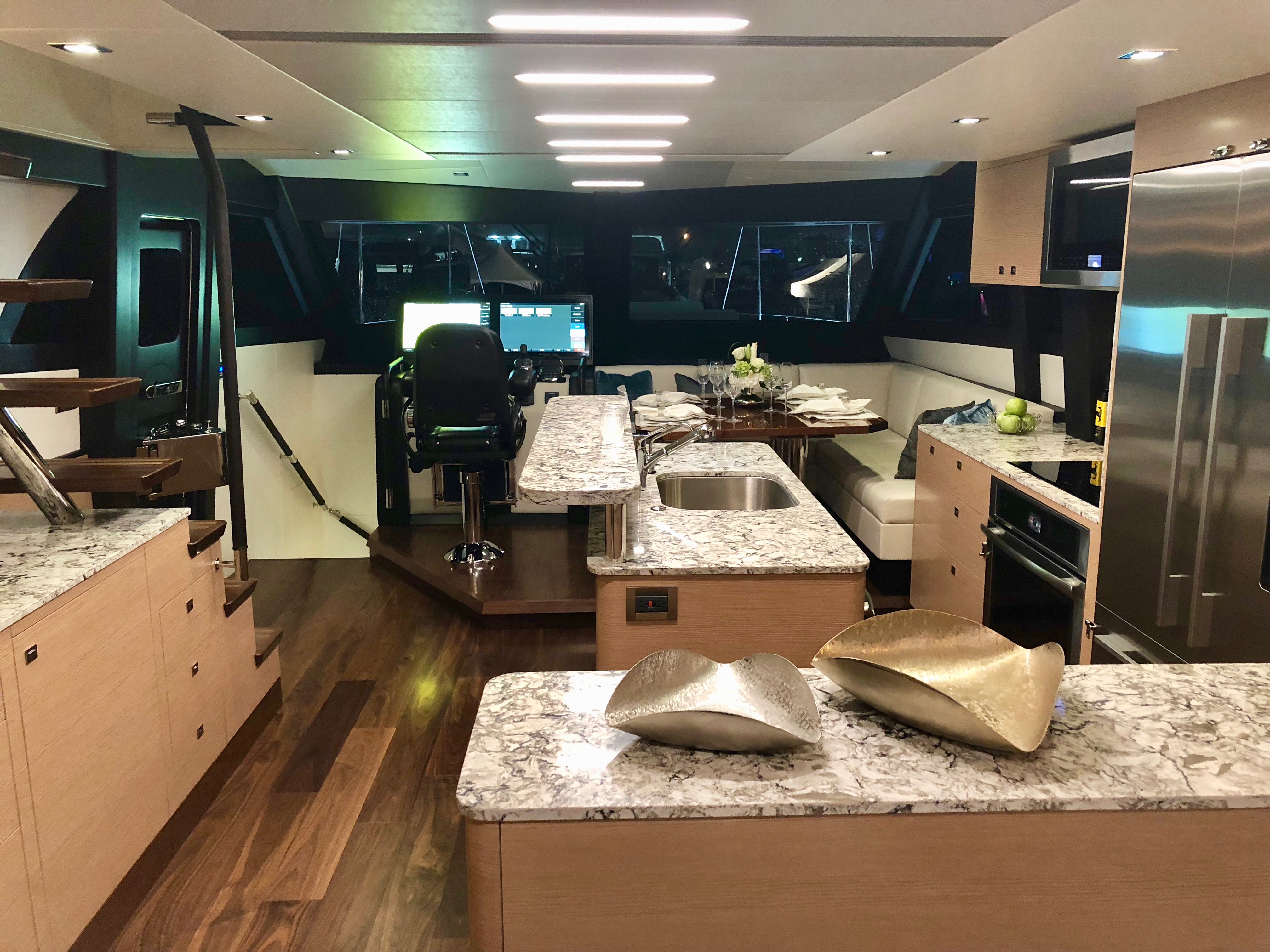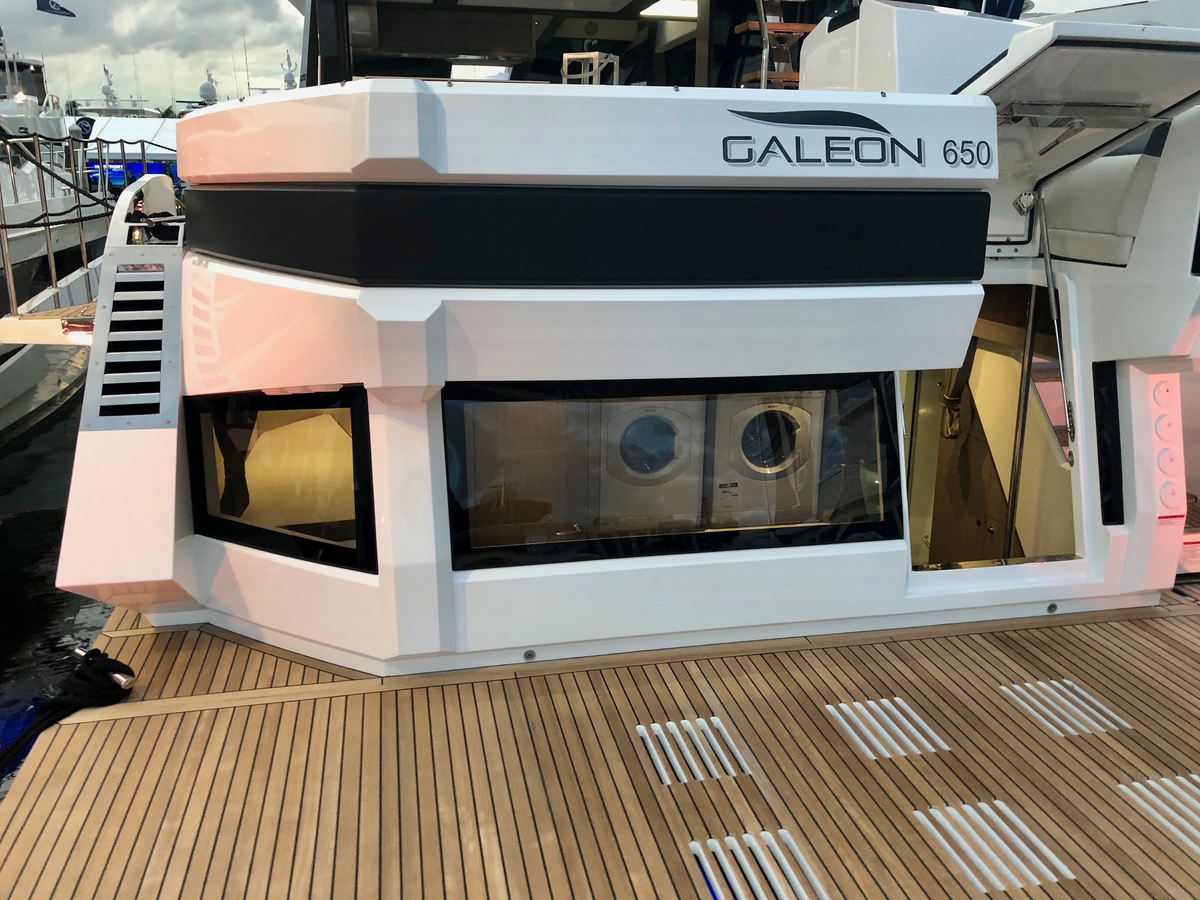 Galeon Yachts also threw a very nice after-hours shindig showcasing this longtime Polish boatbuilder’s incredibly innovative offerings. They are relatively new to the U.S., represented exclusively by MarineMax. Separate from being well-built with excellent performance, so I’ve been told, they are real crowd pleasers with features often found only on much larger boats and some innovations you’ll see nowhere else. For now.