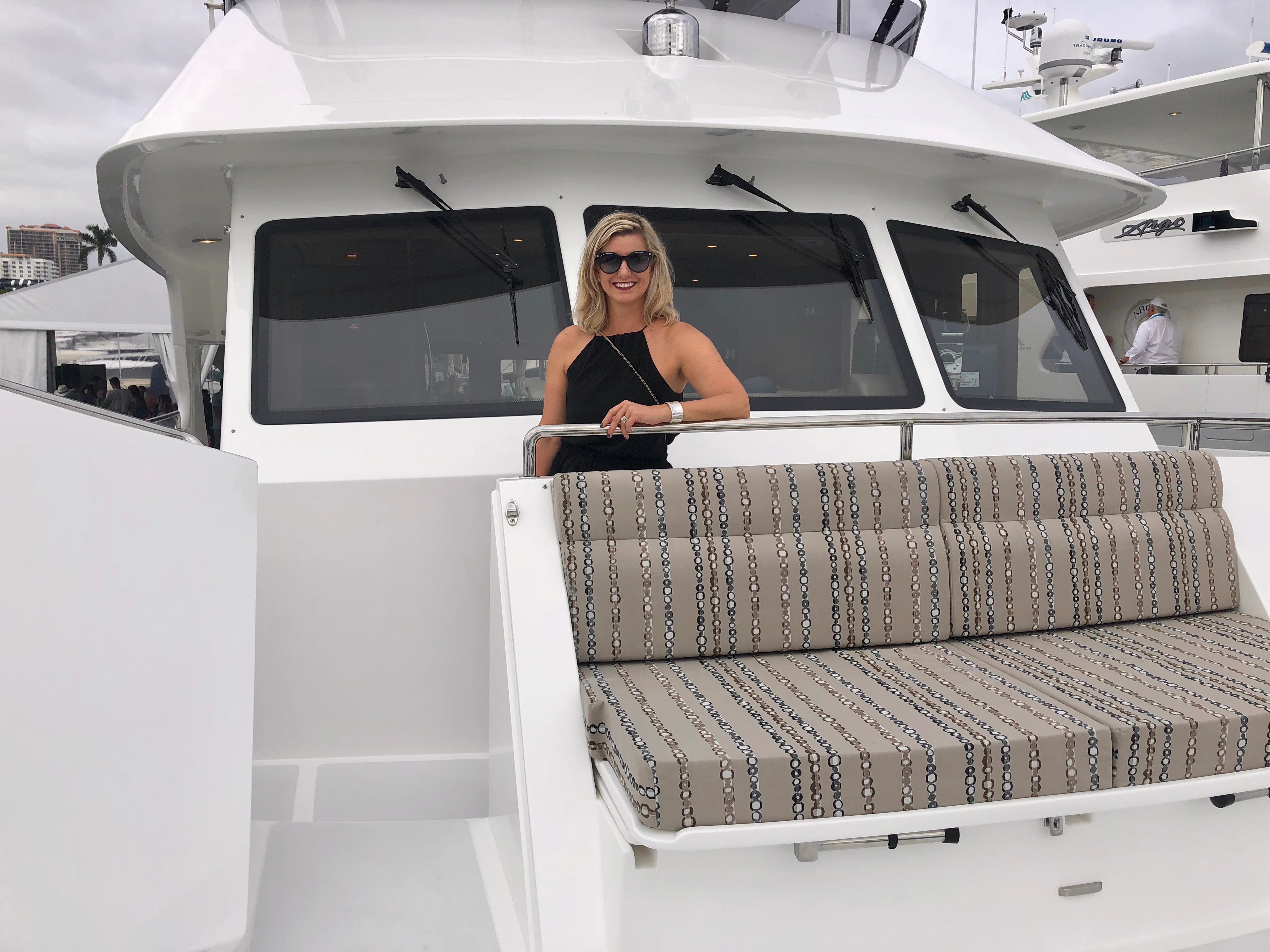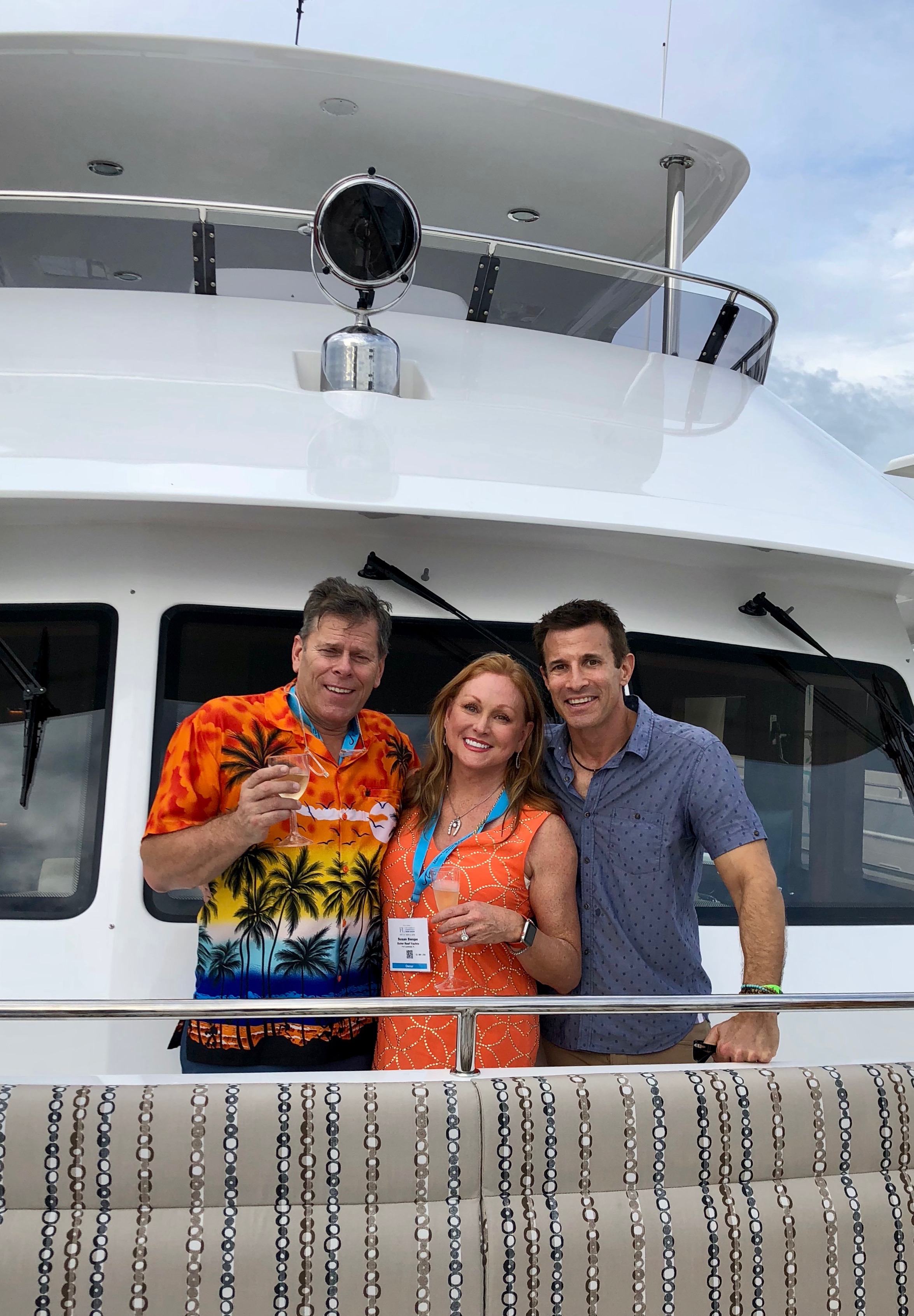 One of the biggest highlights of my time at the show was attending the christening of the just-built Outer Reef 610 Motoryacht Equiessence. While staying at Stock Island Marina last season, Tim and I met Susan and David while we were walking Jasper and they were walking Merlin. We instantly bonded over our mutual love of animals and then, of course, the conversation turned to boats. They were visiting the marina on their Azimut Hullabaloo but told us that they had the Outer Reef “in the build.” That instantly caught our attention as OR is one of our favorite brands. The company’s owner, Jeff Druek, spent a lot of time with Tim and me last time we were at the Fort Lauderdale show, walking us through his boats and educating us on his company. Jeff is a class act and his good energy and the excellent quality of Outer Reef made a lasting impression. As this year’s show was approaching, Susan and David were kind enough to reach out to invite us to their special event which I attended with our dear friend Abbey. Susan and David’s new yacht is extraordinary and we are so excited for the untold adventures that lie ahead of them. It was truly special to be a part of this wonderful event.