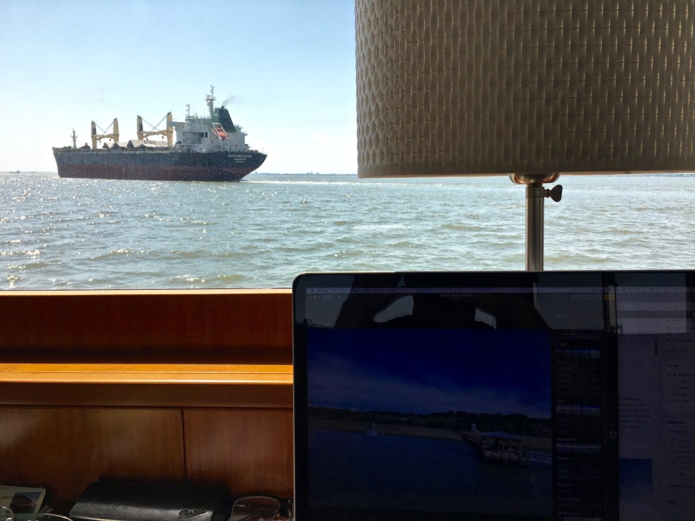 The entire waterway through Norfolk Harbor was eerily quiet and calm with very few boats of any kind on the move, perhaps because it was Sunday and a bit windy, but that made it easier to stand off from the bridge and it was a real pleasure transiting this stretch which can be quite chaotic.